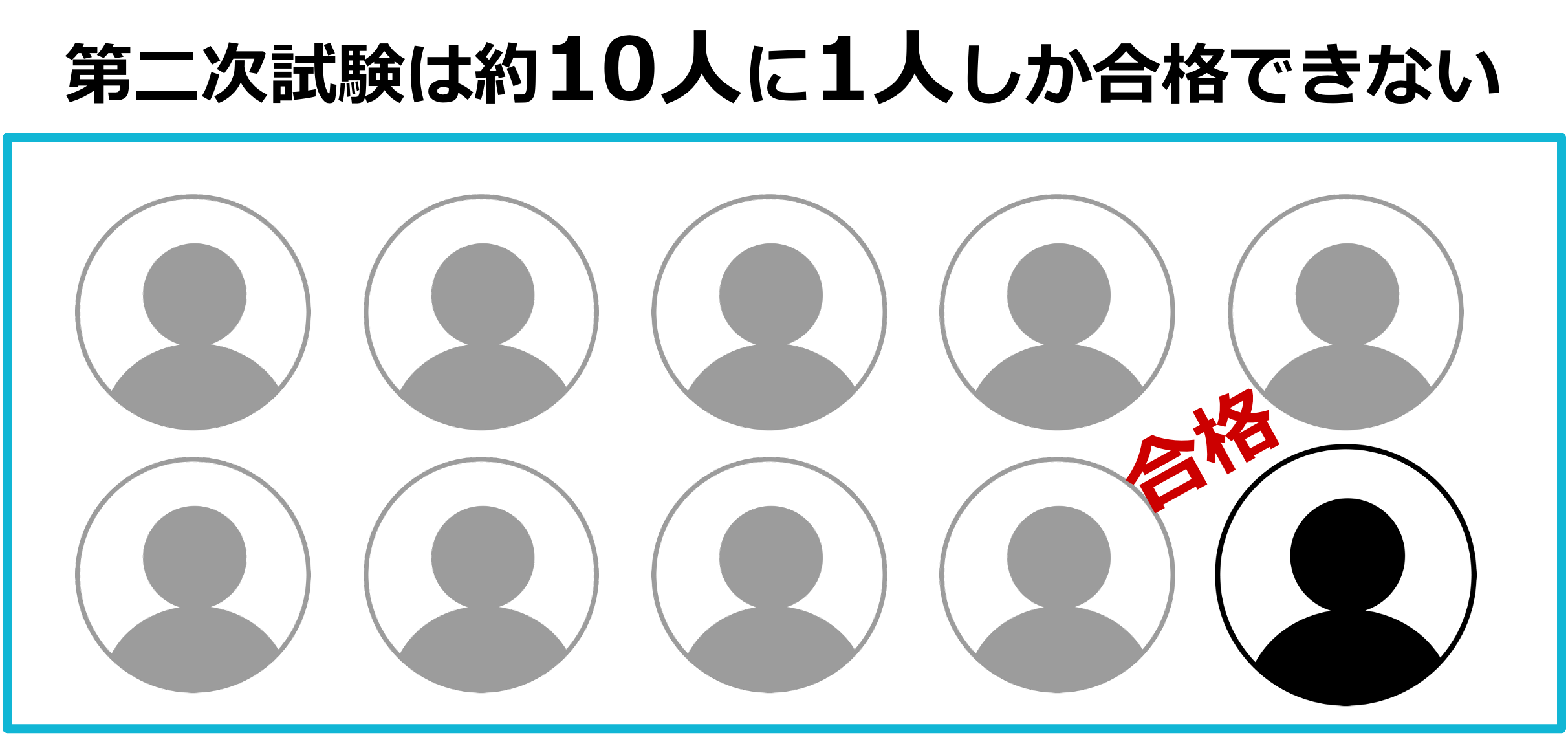 一方、第二次試験の合格率は11.8%で、約10人に1人しか合格できません。