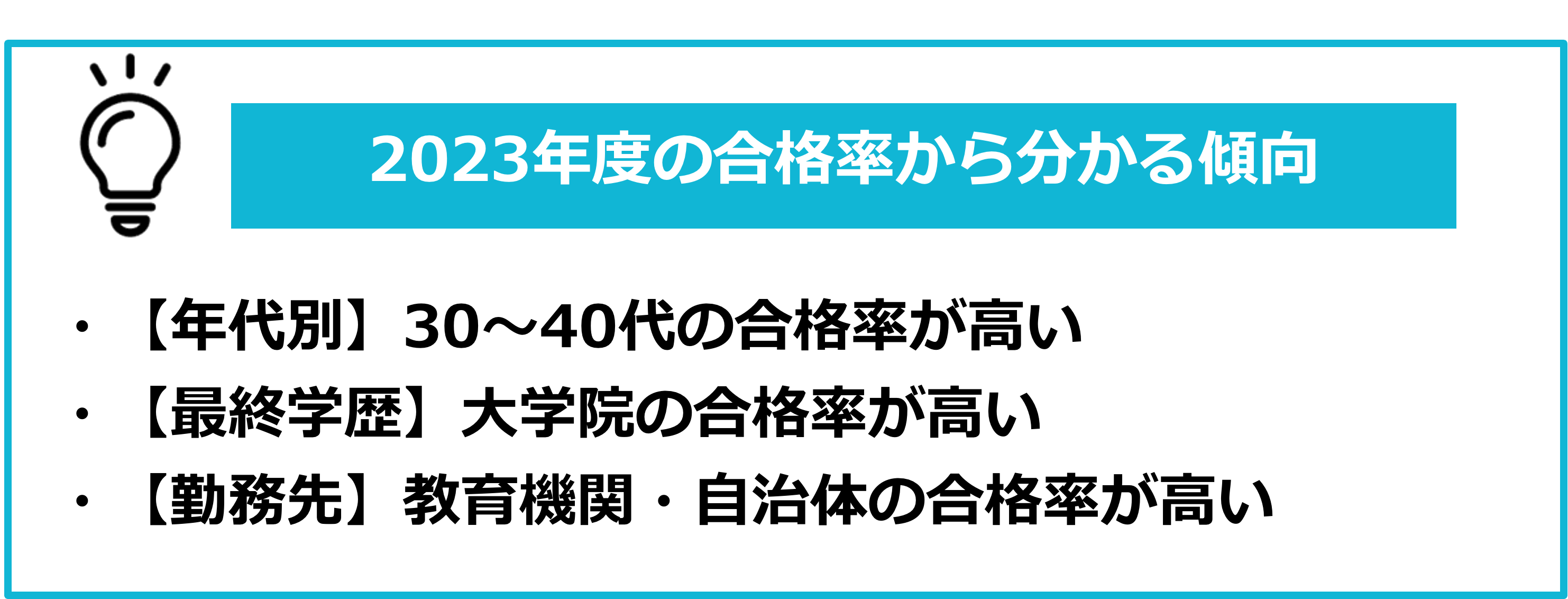 第一次試験と比較すると約3分の1の合格率なので、第二次試験のほうが難易度が高いことが分かります。